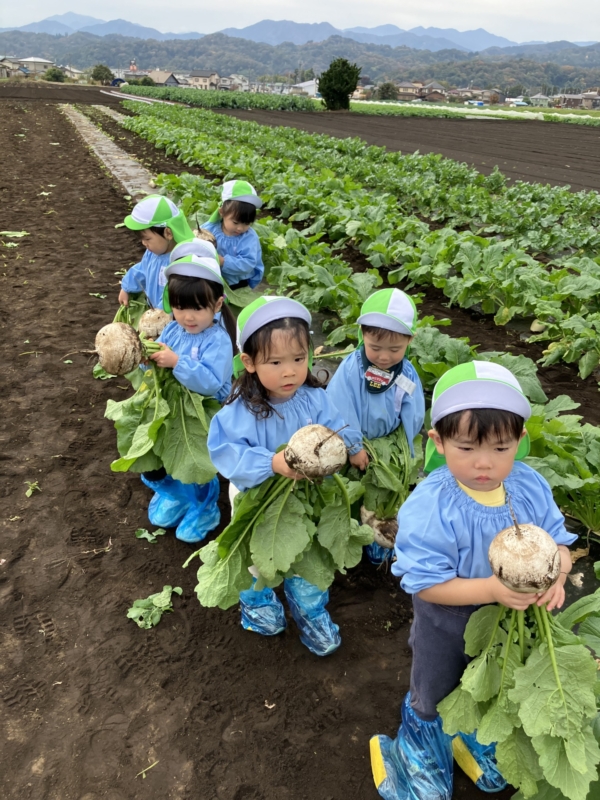 TOP > ブログ > ブログ詳細 2025.11.26 八雲 大きなかぶ♡ 若草組さんがなかよし農園へお出かけしました♪ バスでお出かけ嬉しいな♪ 靴の上からカバーを履いて 茎を持ってクルクルクルクル これは大きいなぁ うんとこしょ・どっこいしょ 抜けるかな~? 頑張ったね! 撫子組さん、蒲公英組さんにもお土産できたよ♡ 待っててね~♡ PREVNEXT 一覧へ戻る NEW 2025.11.26 学童 キッズ11月ブログ 2025.11.26 八雲 大きなかぶ♡ 2025.11.05 橘 発見!! 2025.10.31 今年のハロウィンイベントは…🎃 2025.10.23 八雲 スヤスヤ~💤 CATEGORY すべて 瑞穂 橘 八雲 幼稚園 学童 ARCHIVE 2025 2024 2023 2022 2021 2020 検索
