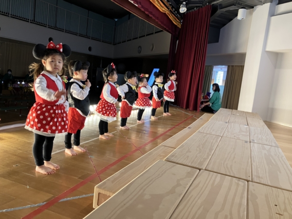 藤組はみんな大好きミッキーとミニーになりきり、自分たちで作ったお手製の小道具を持ちお遊戯してくれました❤️