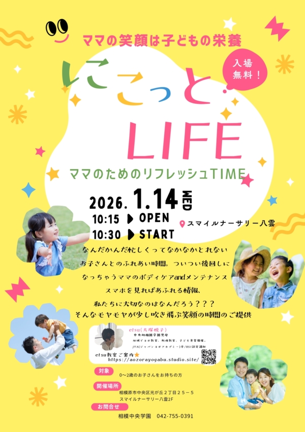 1月14日(水)10:15~11:45『にこっとLIFE~ママのリフレッシュ時間~』
