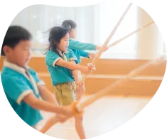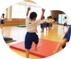 正しい姿勢・楽しい運動は、健康な心身を保ち、行動力・忍耐力・協調性・正義感などの精神力を養うのに不可欠です。また、幼児期の豊かな運動体験が、何事にも果敢に挑むたくましい人間性を育てます。