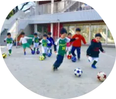 ボールを追いかけ走り回り、子どもの運動欲求を満たすとともに、自然と体力が鍛えられます。また、ボールの不規則な動きに対応する、敏捷性・判断力を養い、チームプレーの中から協調性・思いやり・自主性を養うことができます。
