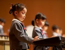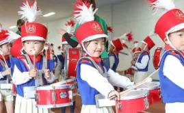生活環境の中に音楽を豊かに取り入れています。積極的に“聴く” “歌う” “演奏する” “リズム表現をする”といった活動を通し、リズム感を養い、音楽を愛する豊かな人間性を育てます。