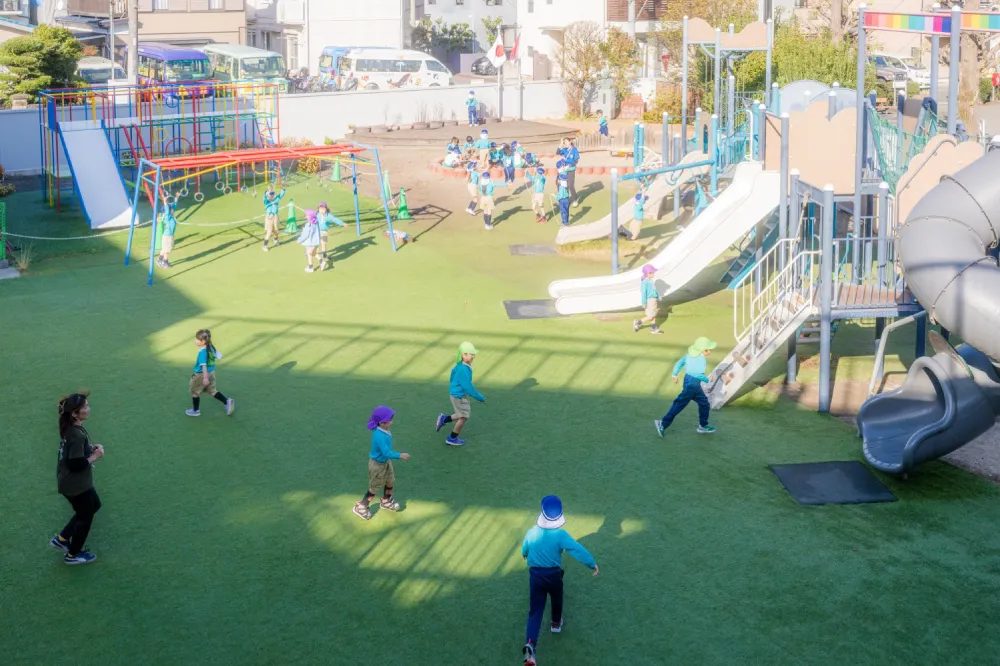 当学園は、時代のニーズや地域の変化に応じて、園の運営方法を常に模索・進化しています。共働きの保護者、また園で働く先生自身が子どもを預けながら働きやすいように、0歳児からでも預かられる体制を整えたり、栄養ある美味しい給食を毎日提供して、ご家庭での負担を軽減したり、様々な変化をしています。また、教育環境の充実化を図るための天然芝の全面設置や、カリキュラムの見直しも図り、今の時代を生きる子ども達の成長を最大化できるように運営しています。