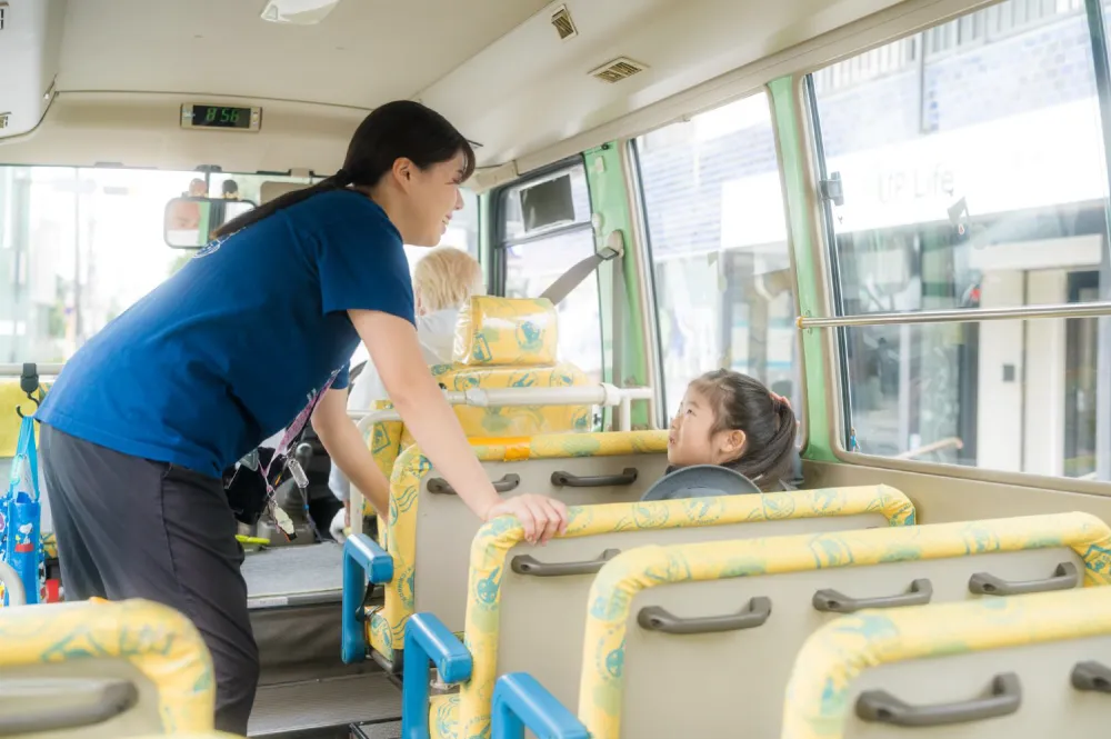 園のマイクロバスで登園・降園する園児を送迎に添乗します。利用児童は100名以上おり、子どもたちの安全と楽しい園生活をサポートします。