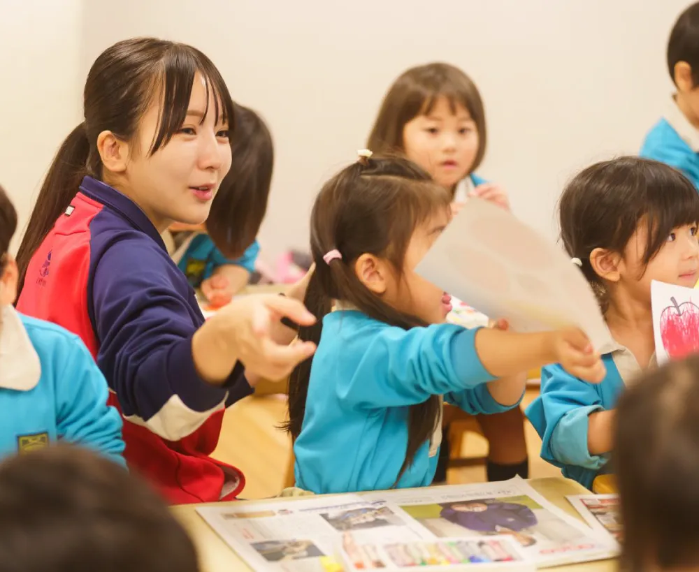 満3歳児から就学前の子どもたちに関わり教育活動を行います。その他にも毎日の教育カリキュラムの作成、活動準備、行事の企画や進行、職員会議、書類作成、保護者対応、添乗バスの添乗業務、掃除など、仕事内容は多岐にわたります。
